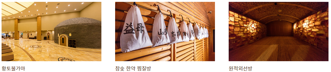 혈액순환을 돕고 스트레스를 풀어주며 숙면을 취하도록 도와주고 노화방지 및 피부 체질 개선 등에 효과가 있는 찜질방도 운영하고 있습니다. 황토불가마, 참숯 한약 찜질방, 원적외선방, 아이스방 등이 운영 중이며 계란, 커피, 아이스크림, 핫도그, 미역국, 비빔밥, 짜장면, 돈가스 등을 판매하고 있는 매점과 간단한 오락을 할 수 있는 오락실이 있습니다.